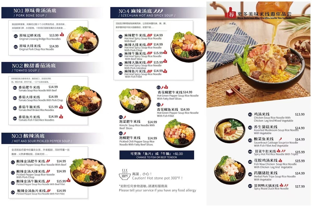 十秒到云南过桥米线 Crossing Bridge Rice Noodle Menu