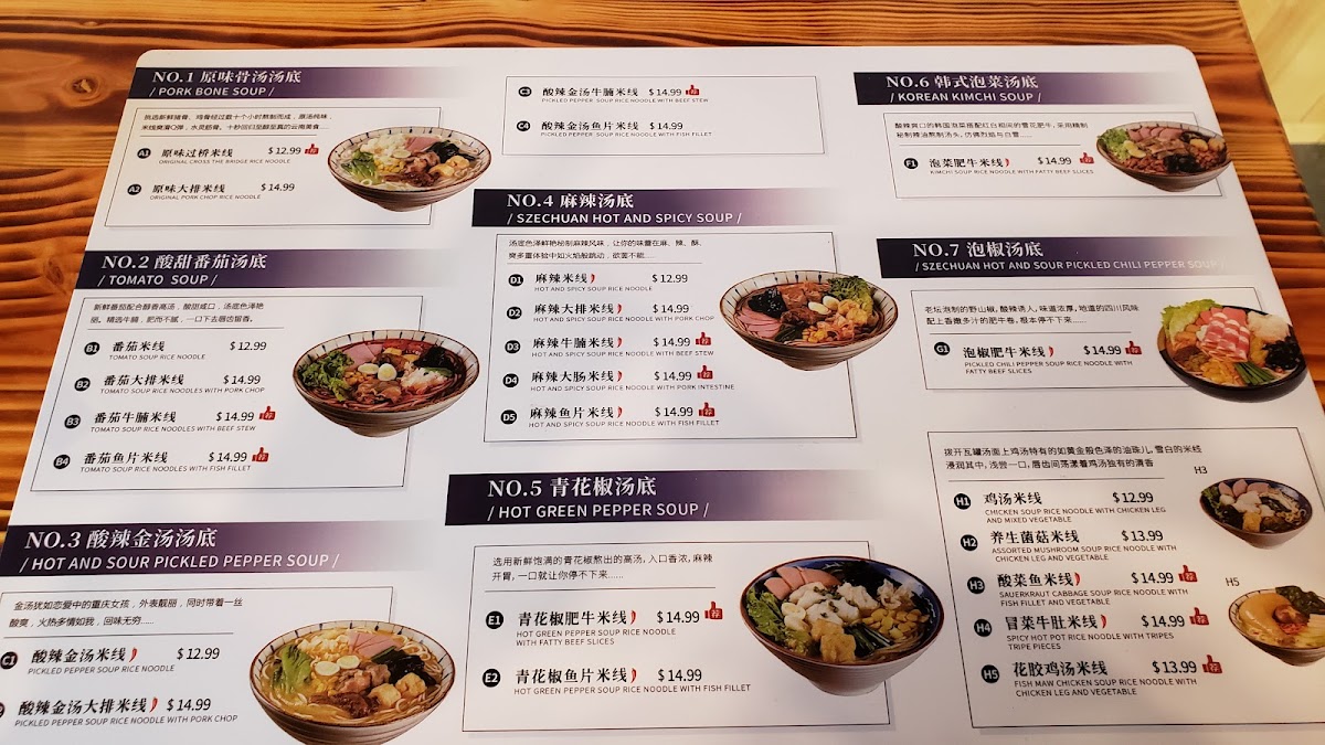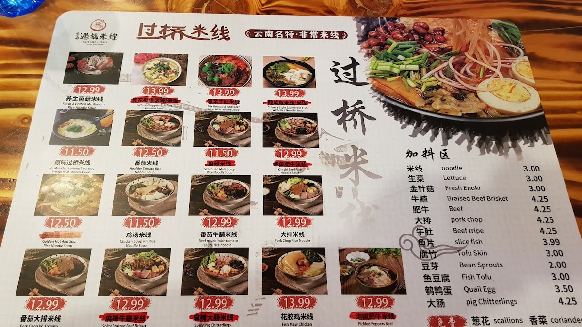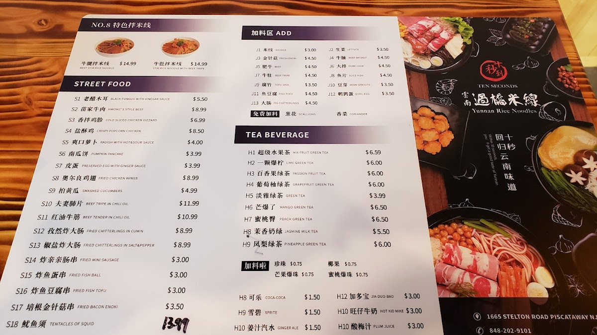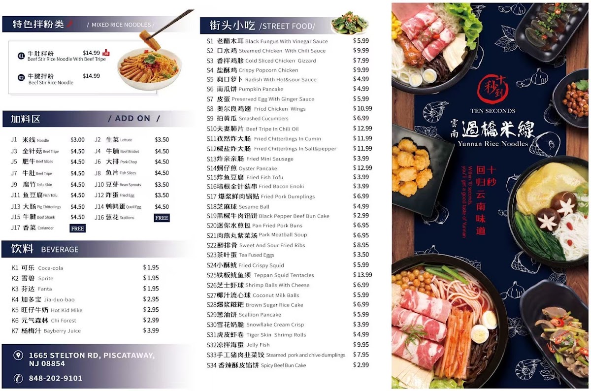 The menu at 十秒到云南过桥米线 Crossing Bridge Rice Noodle offers a focused selection of traditional Yunnan-style rice noodle soups and complementary small dishes. Its simplicity reflects the comforting, homey atmosphere found in regional noodle shops, where the emphasis is on fresh, flavorful broths and tender noodles that invite slow, satisfying meals.